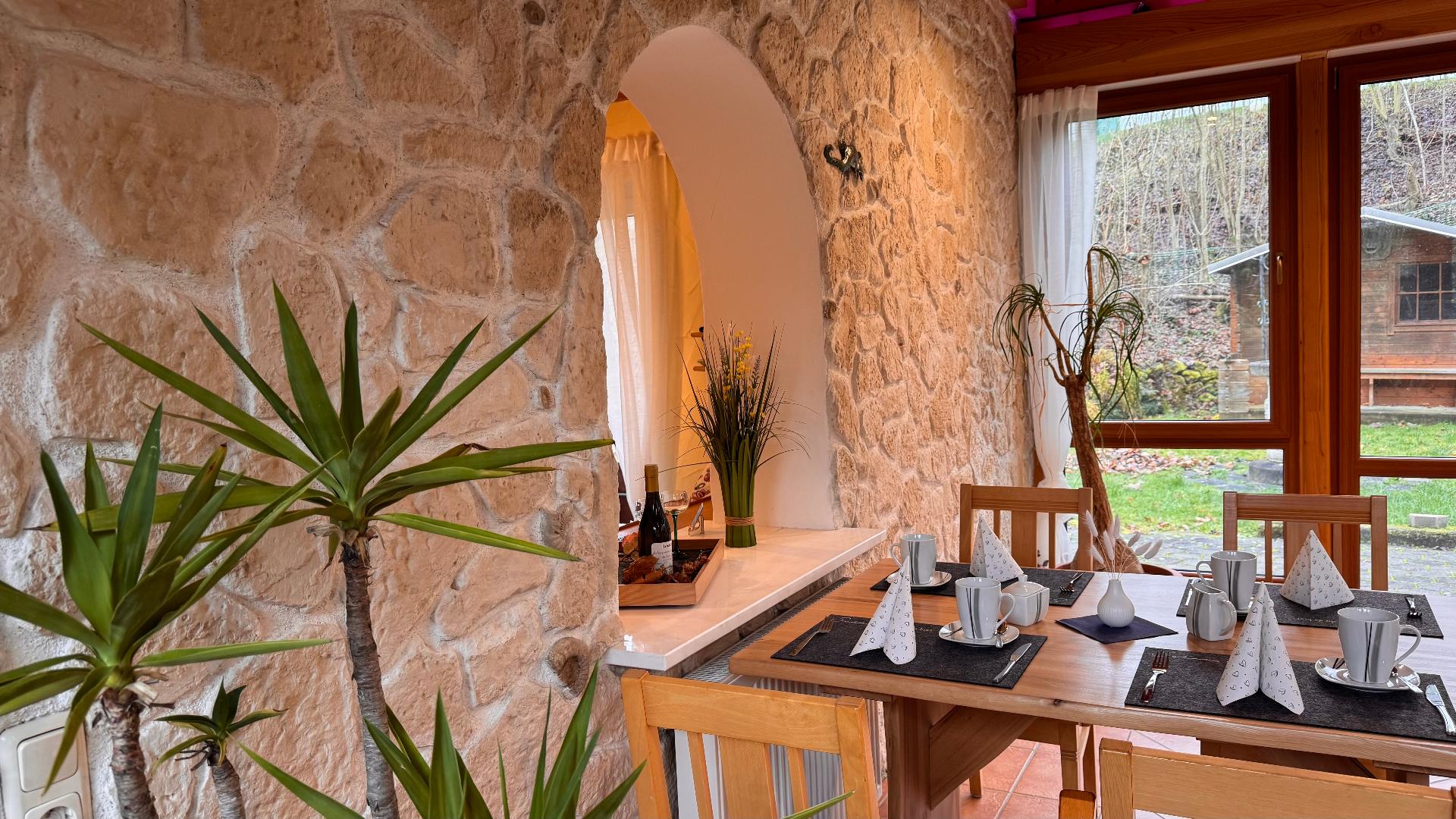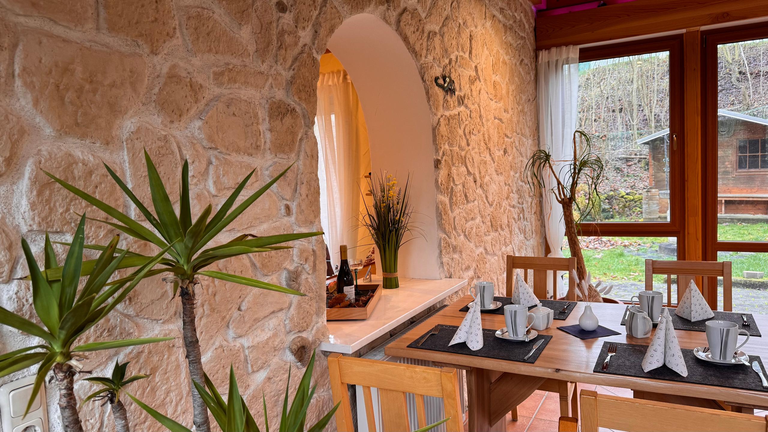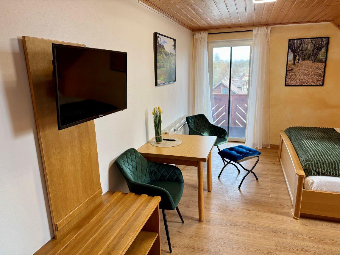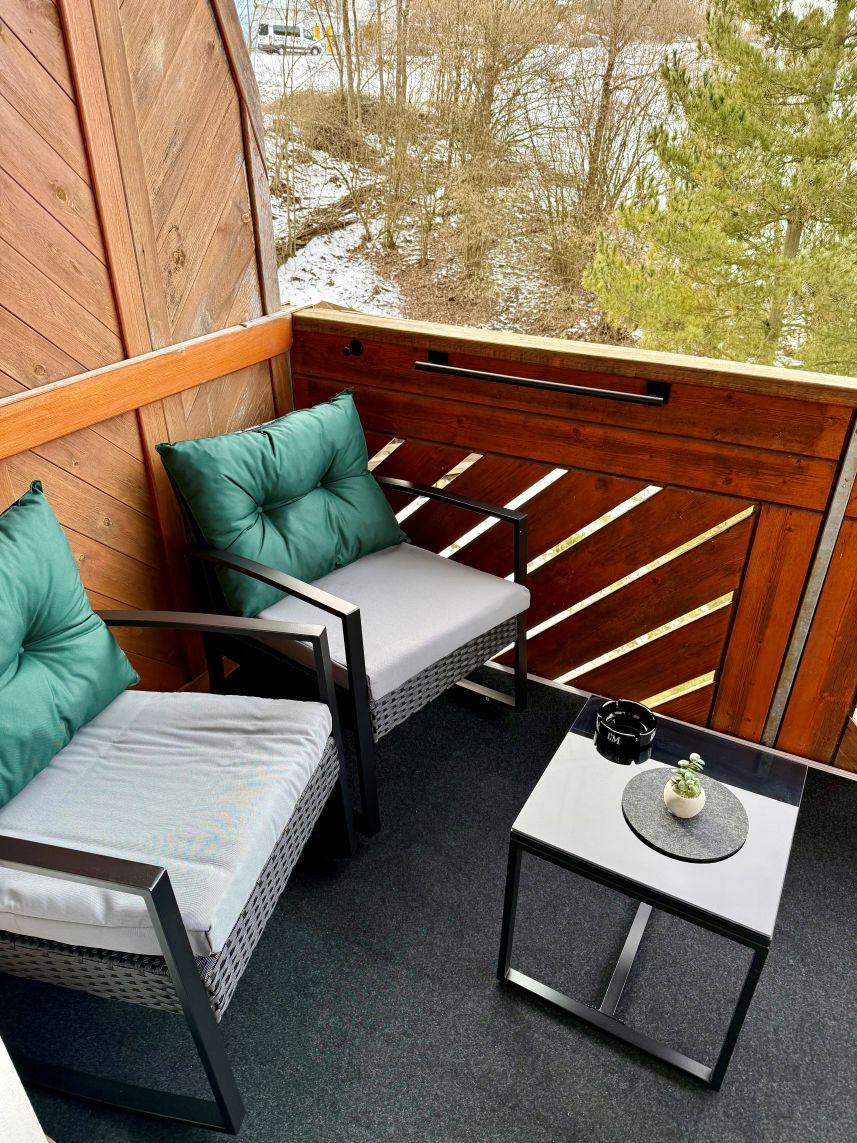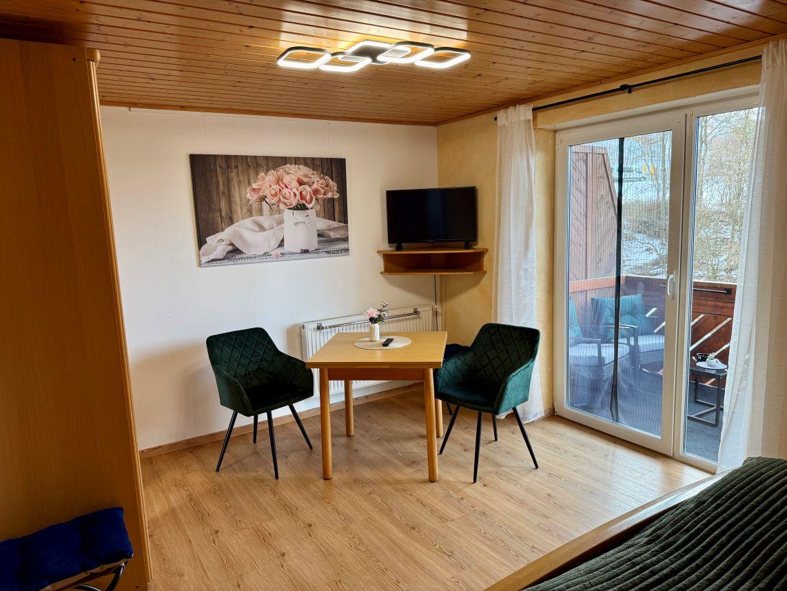 mit Tisch und zwei Polsterstühle